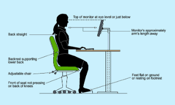 - Position the top of the monitor approximately 2-3” above seated eye level. (If you wear bifocals, lower the monitor to a comfortable reading level.)